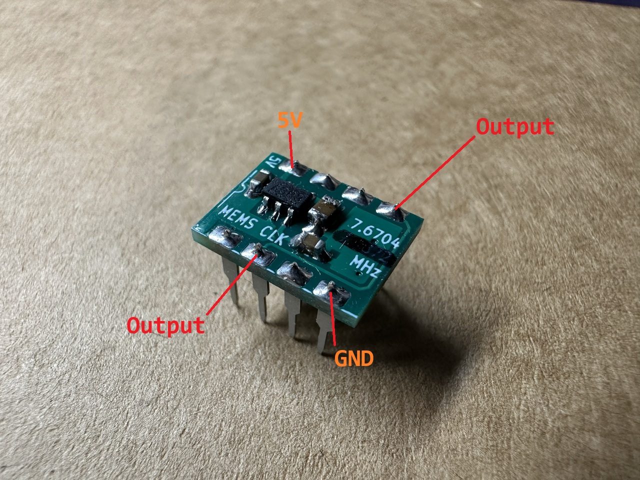 クロック信号は写真に書きこんであるように、2pinと5pinから出力されます。
