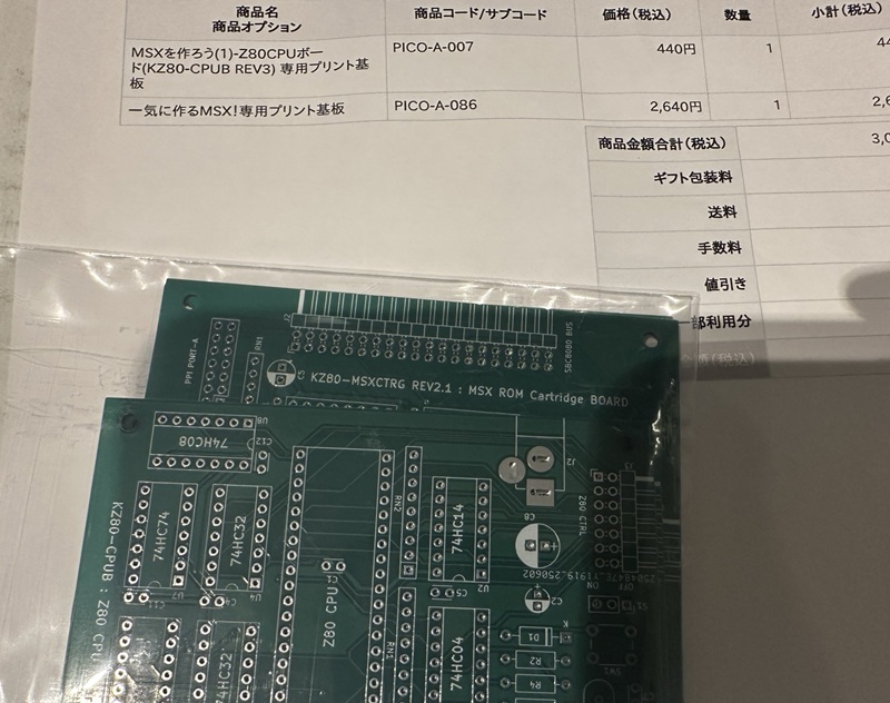 オレンジピコさんからMSXを自作する用の基板セットを購入しました。